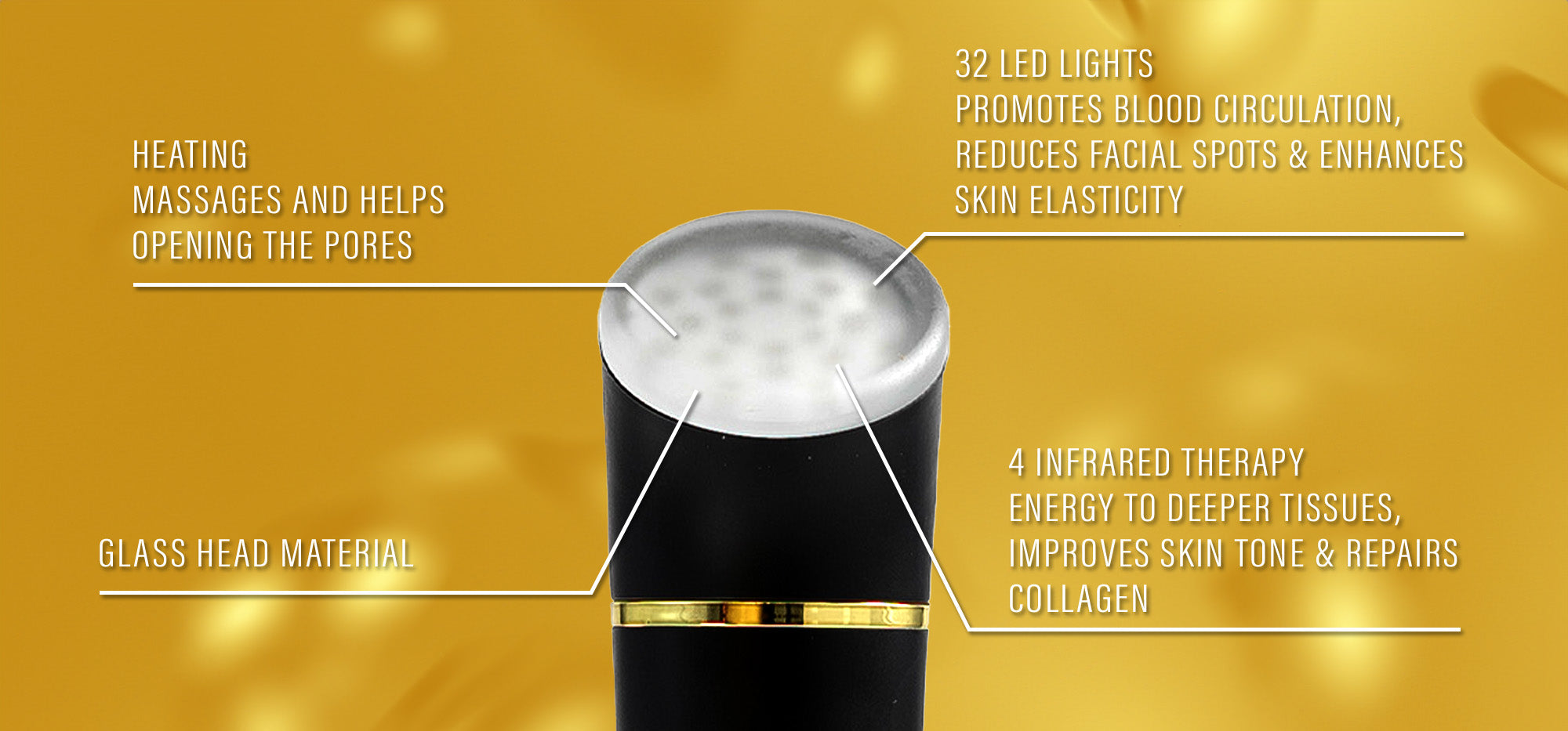 5. Apply to Skin: Gently press the device against the skin, moving slowly over the target areas such as the face, neck, and décolletage. Avoid direct eye contact with the light.