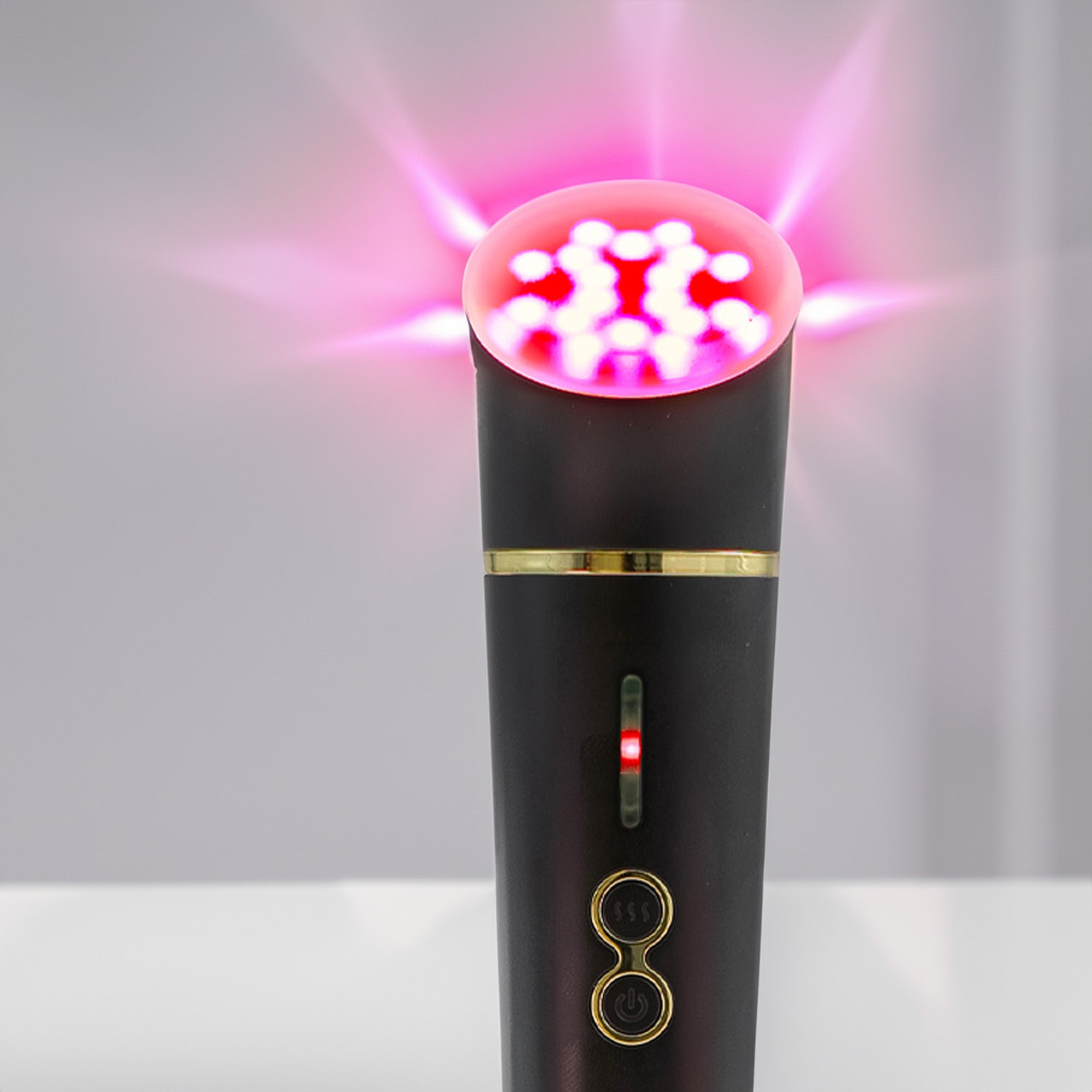 By emitting light at specific wavelengths, the device stimulates the natural production of elastin and collagen, crucial proteins for maintaining skin's structural integrity and elasticity.